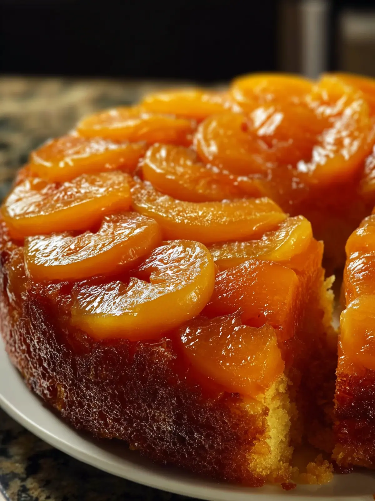 This delicious apricot upside-down cake features a caramelized apricot topping and a moist, fluffy cake that is perfect for dessert or a sweet treat.