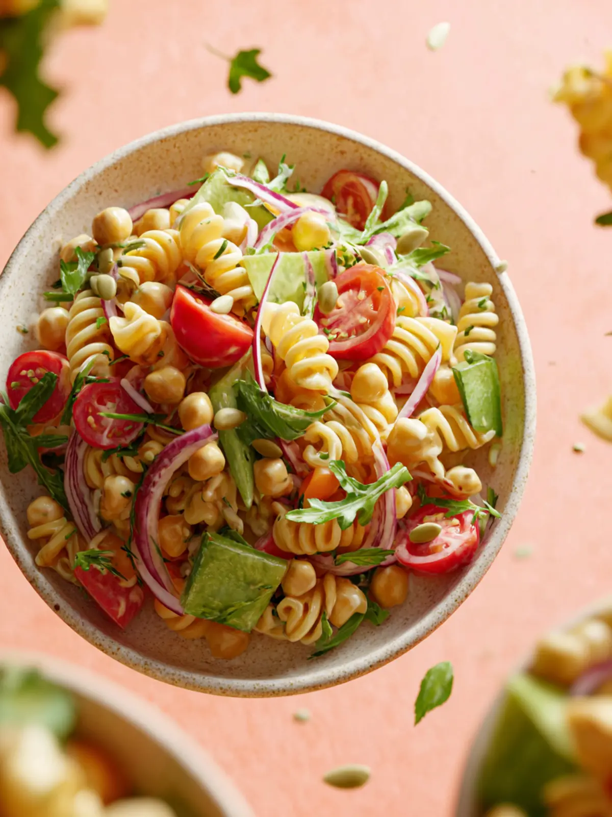 Don’t forget to season your chickpea pasta salad adequately! A mix of fresh herbs like parsley or basil adds freshness, while salt, pepper, and a pinch of red pepper flakes infuse warmth and depth.