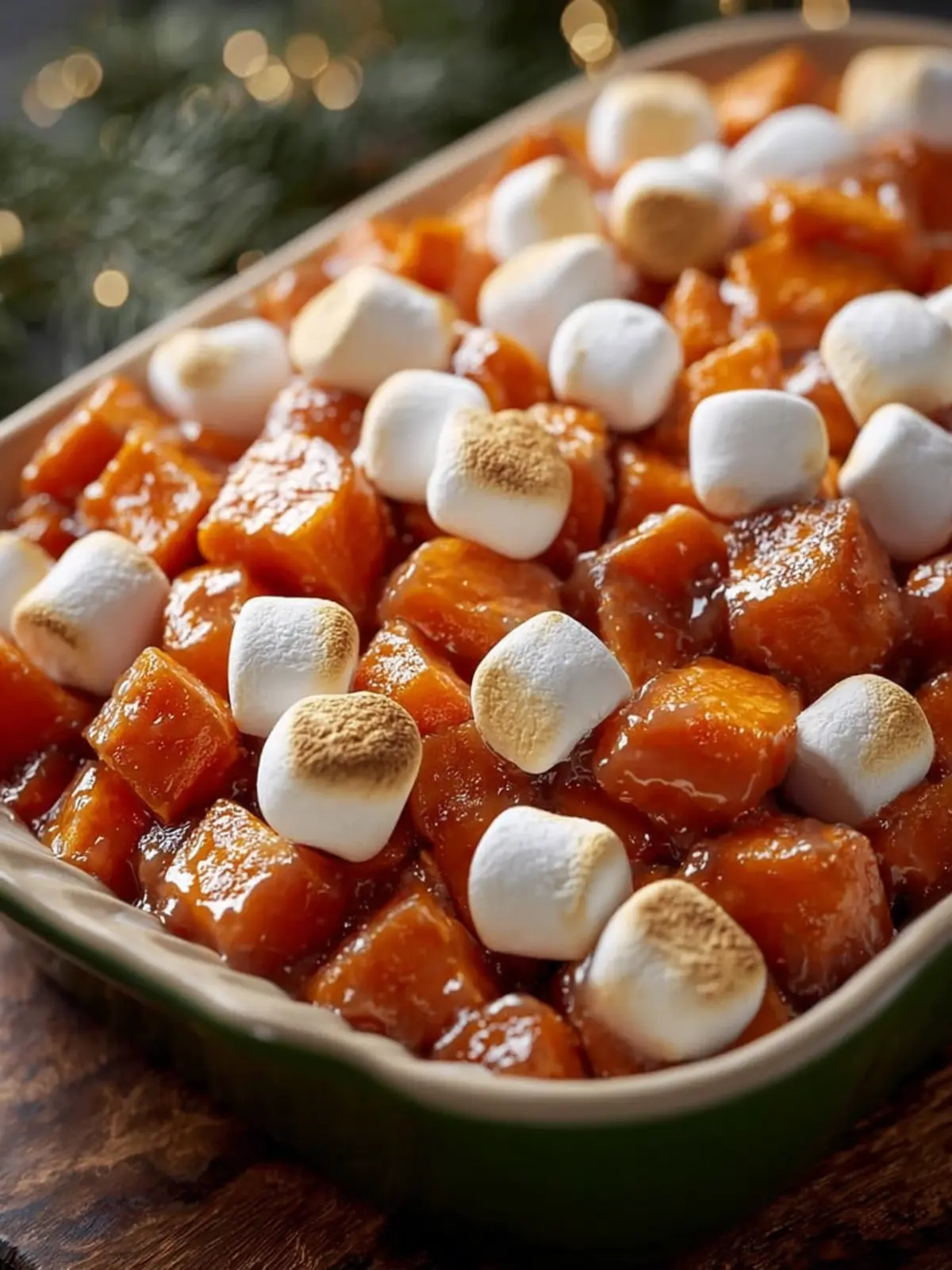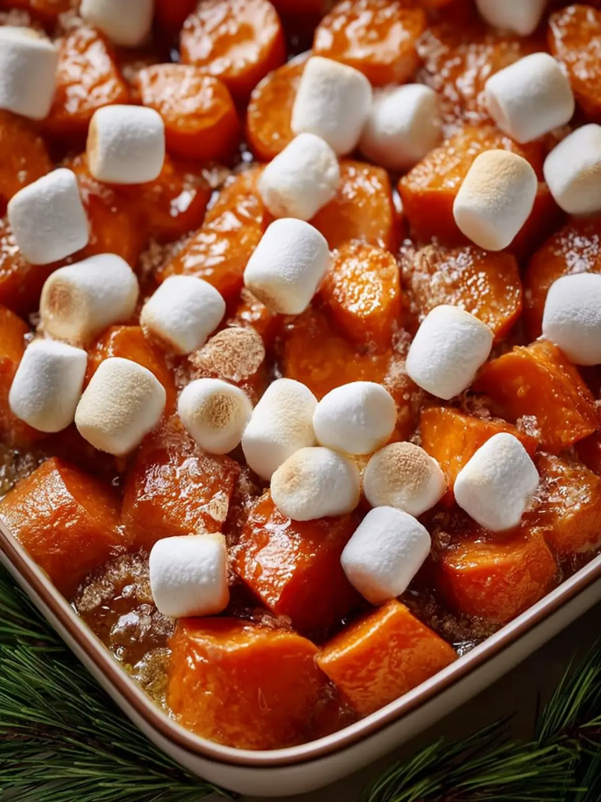 Visual Appeal: These sweet potatoes glisten with a glossy glaze and are topped with fluffy marshmallows that toast to perfection. They’re truly a feast for the eyes and make any meal feel like a special occasion.