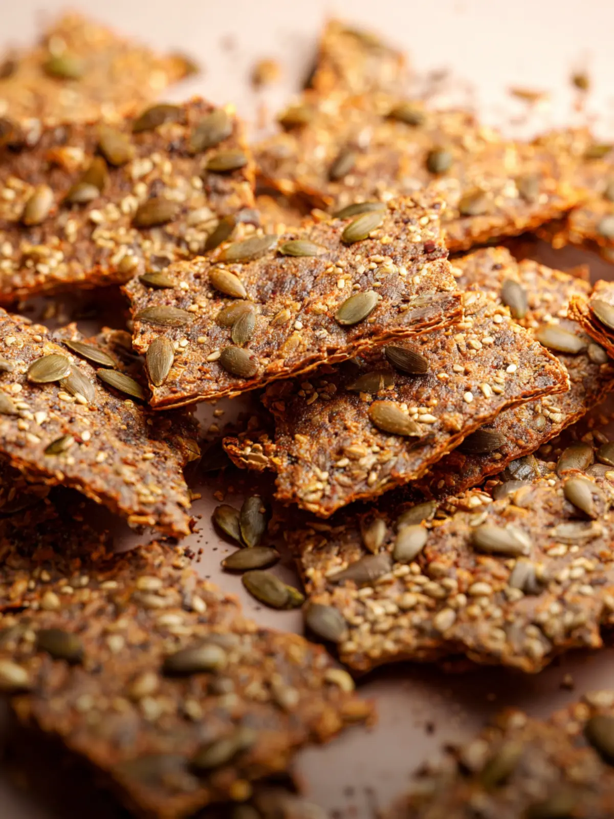 Healthy and delicious seed crackers made with sunflower seeds, pumpkin seeds, chia seeds, and flax seeds.