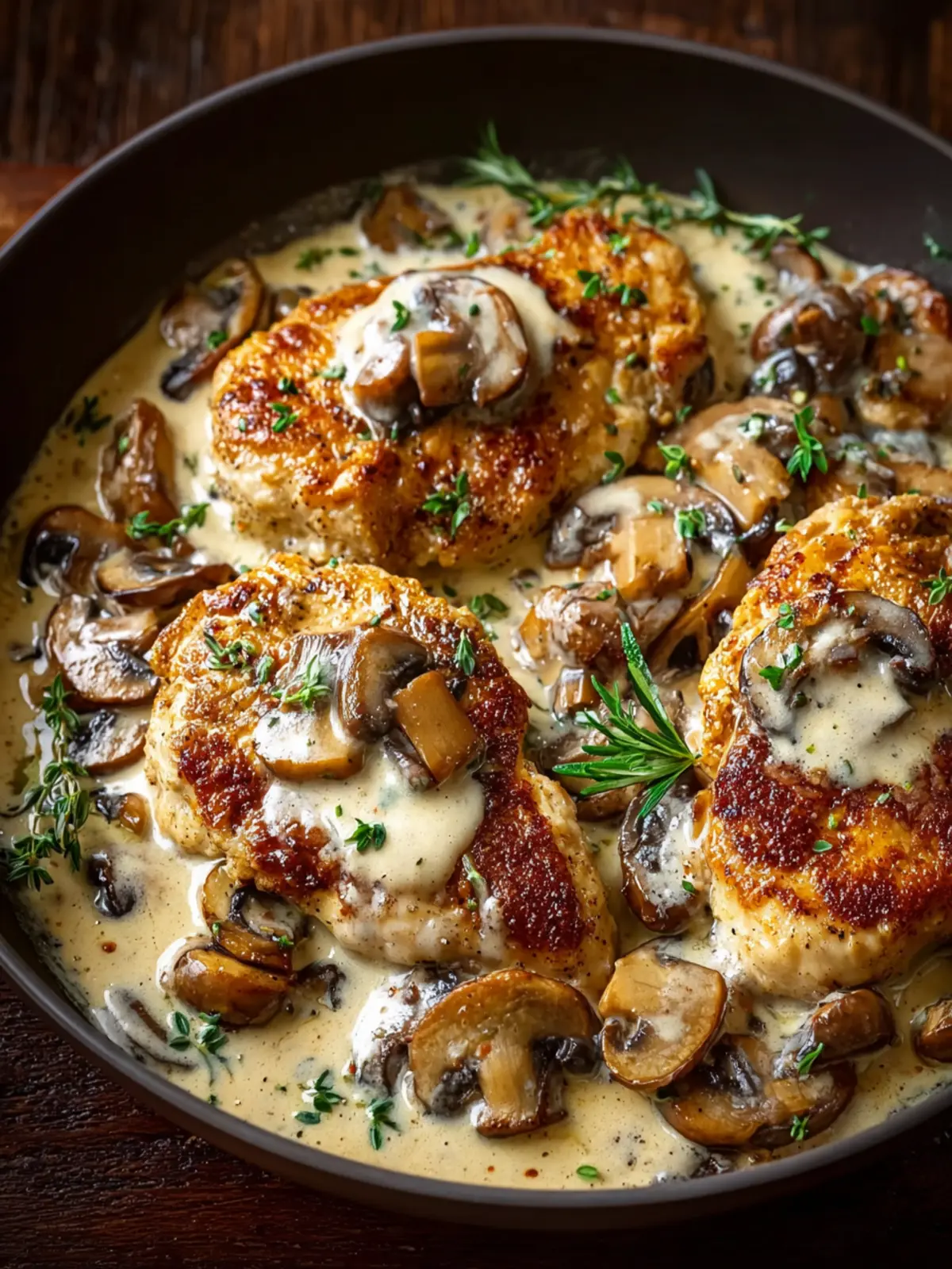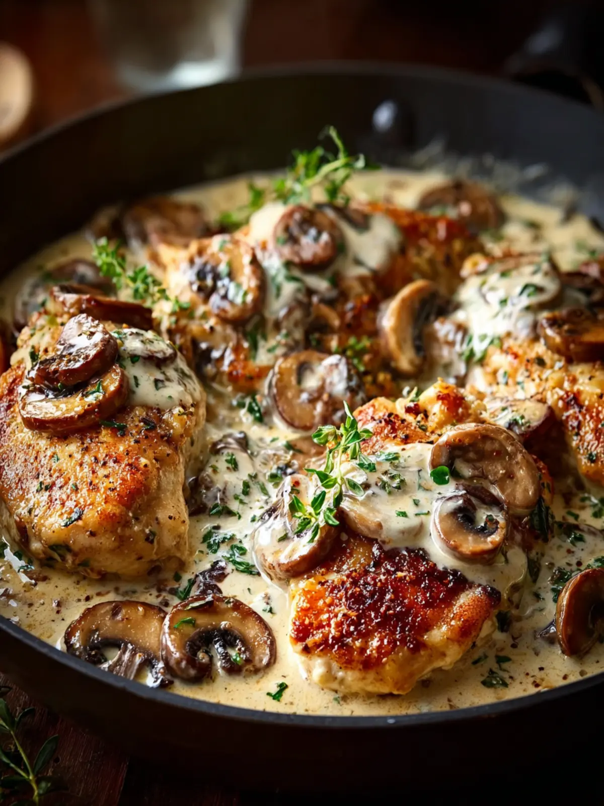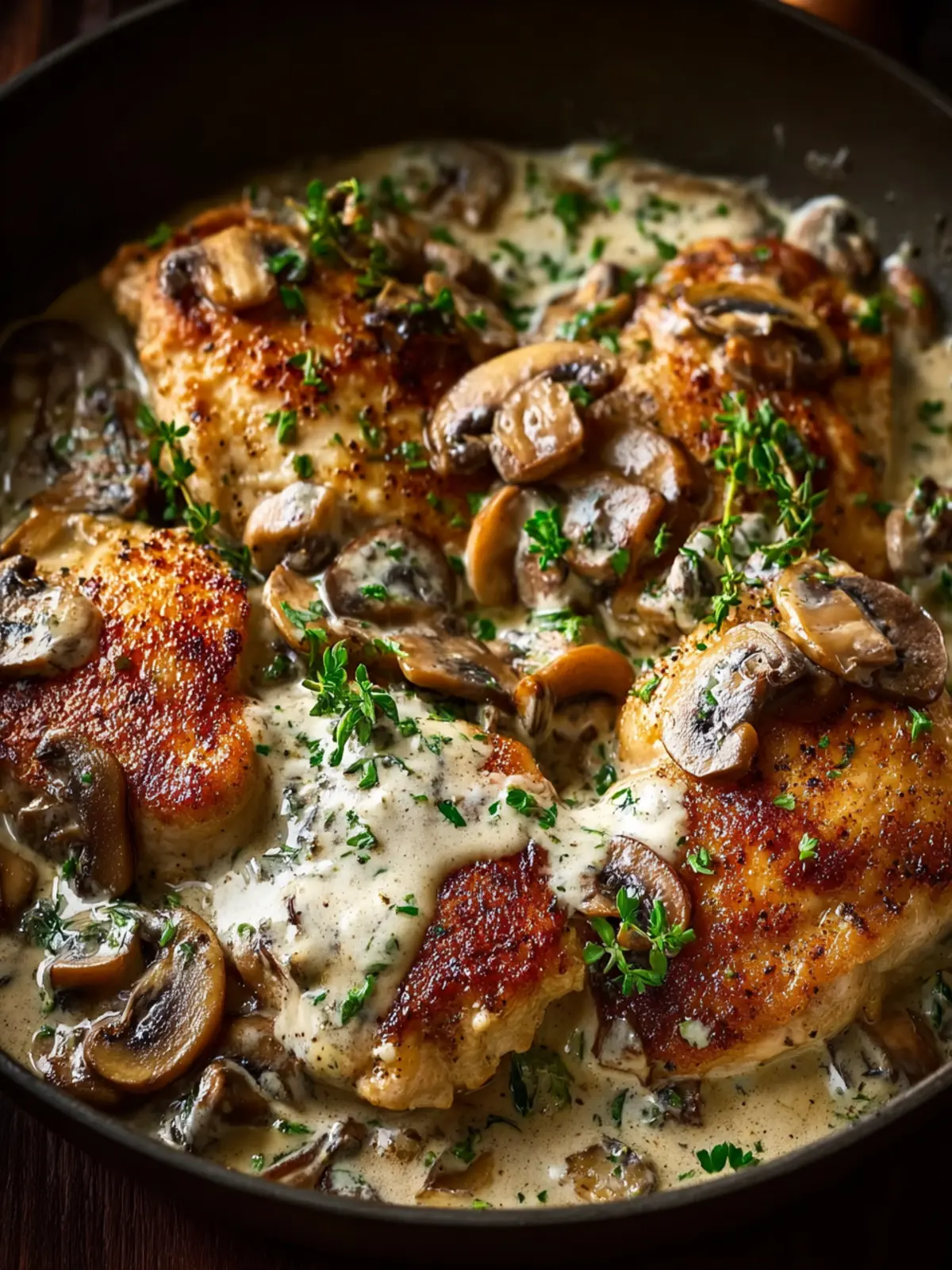 Herbs: A blend of thyme and parsley elevates this one-pan creamy mushroom chicken with freshness. If you have fresh herbs on hand, they truly take this dish to the next level!