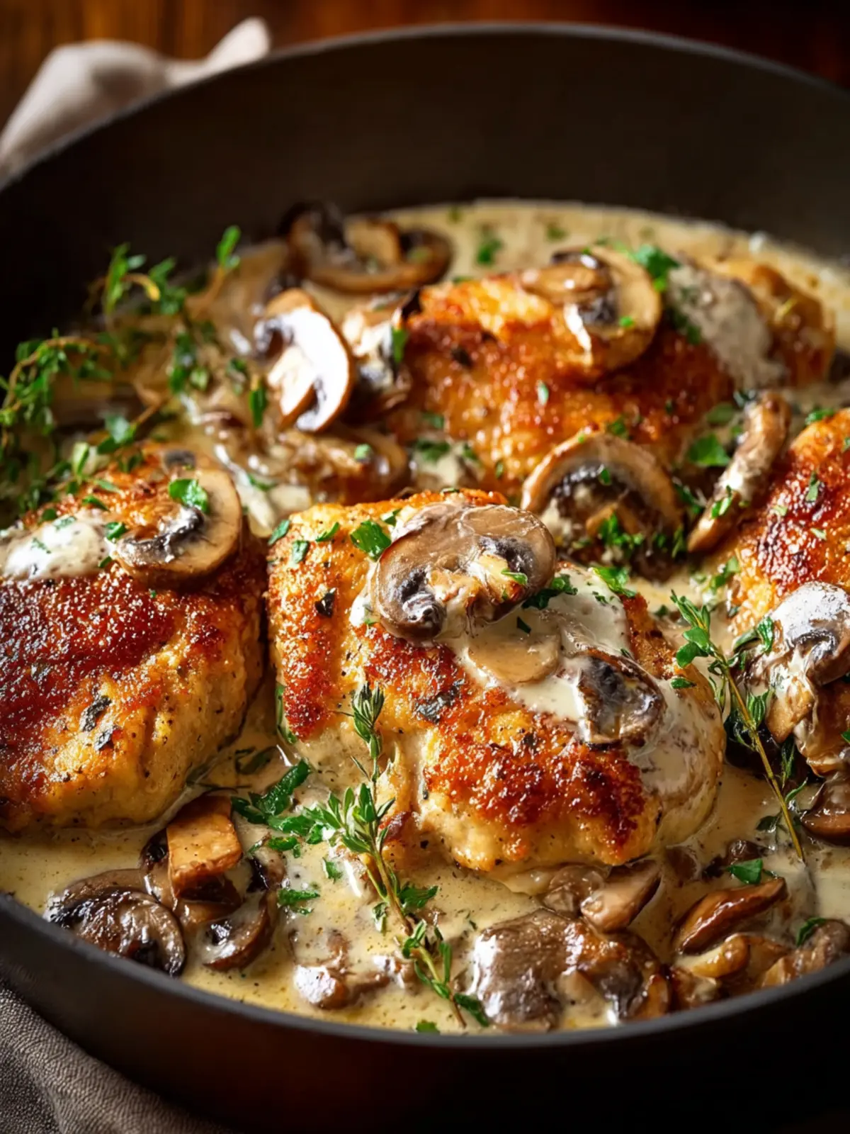 Once you’re prepped, the cooking process usually takes around 25 minutes. This allows the chicken to become golden and the mushrooms to release their flavors, melding beautifully into the creamy sauce.