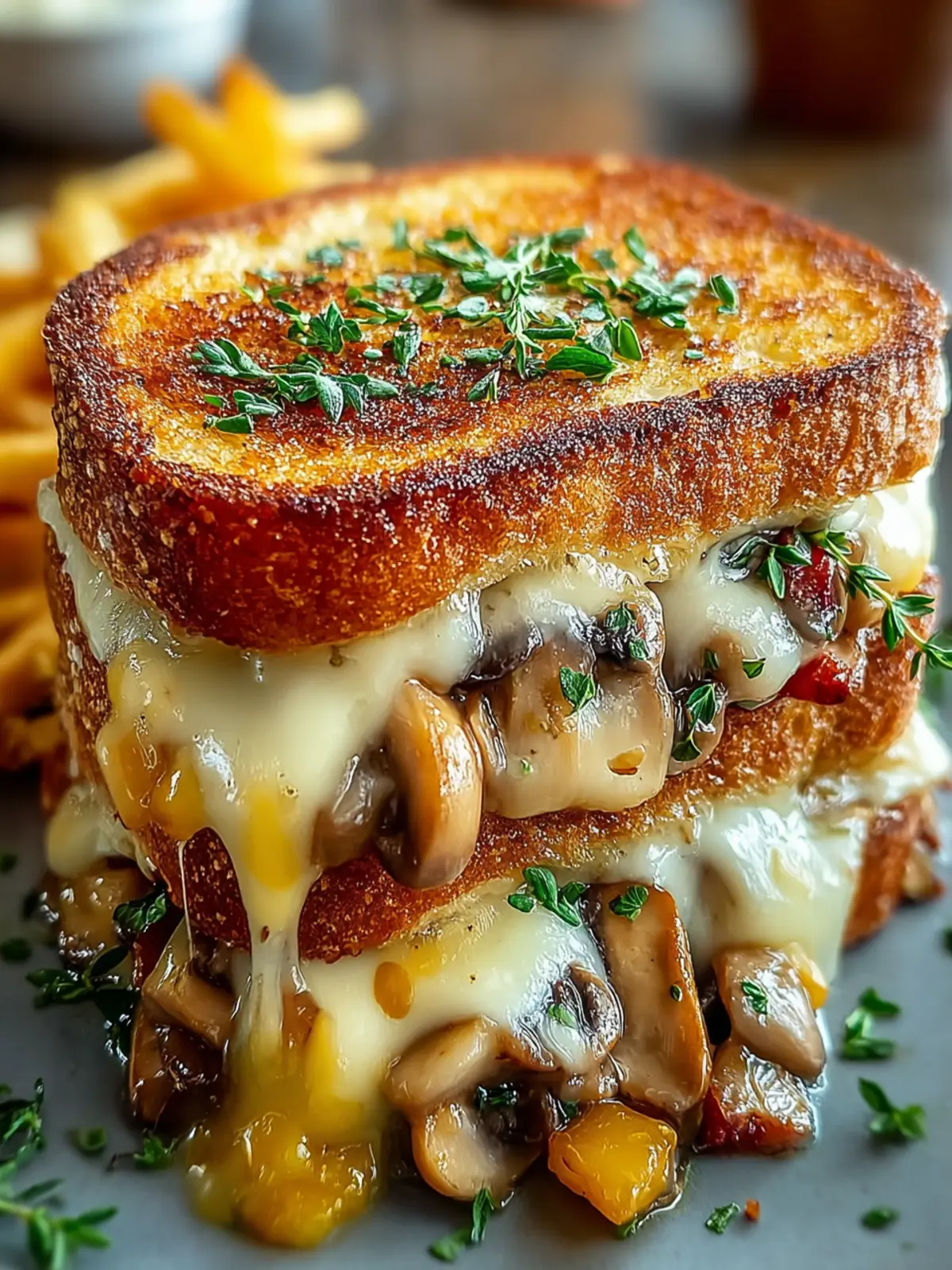 To take your sandwich to the next level, consider drizzling a balsamic glaze over the top just before serving. It adds a tangy-sweet contrast that pairs beautifully with the savory mushrooms and melted cheese, creating a gourmet experience right at home.