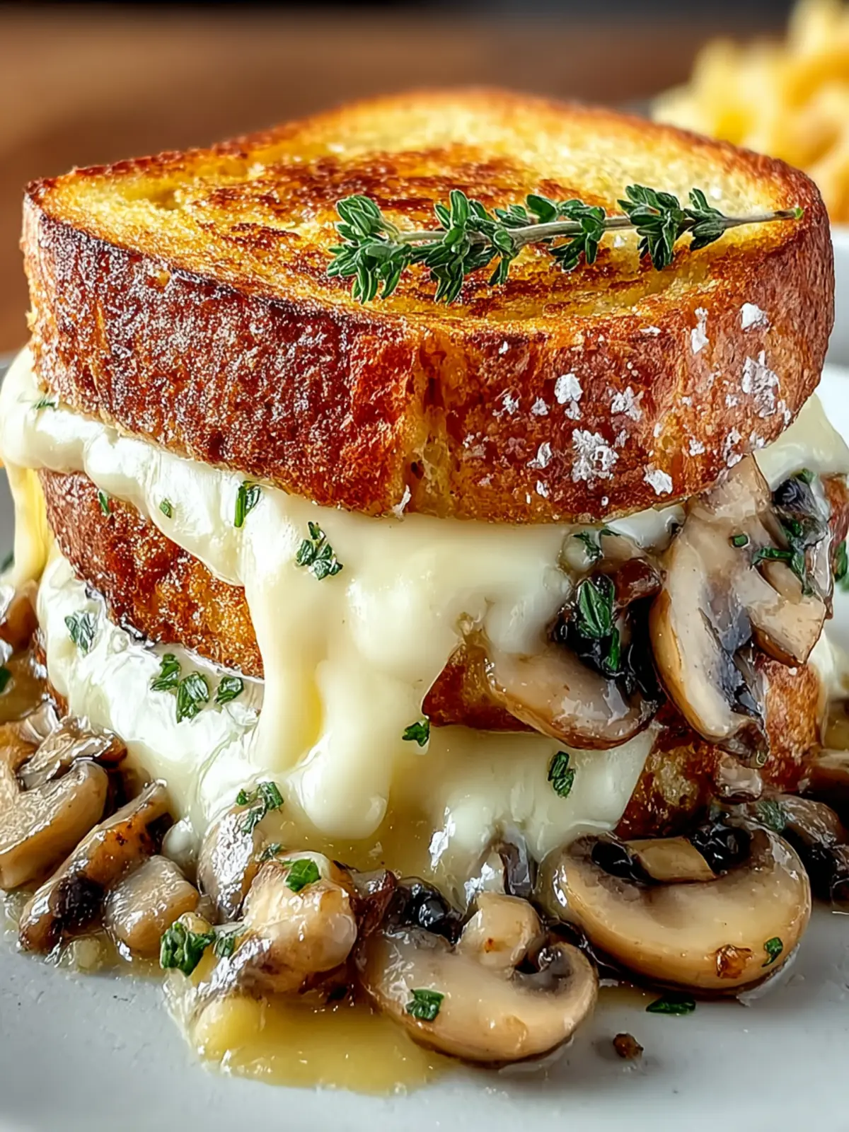 I adore using sourdough bread for this sandwich because it has a tangy flavor and a chewy texture that holds up beautifully against the gooey cheese and sautéed mushrooms. It introduces a slight crunch on the outside while remaining soft inside.